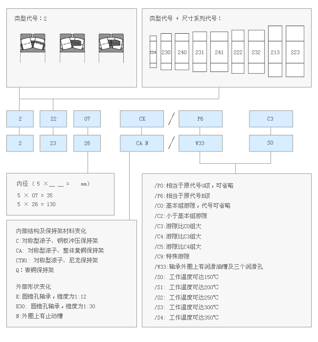 調(diào)心滾子軸承的不同設(shè)計(jì) 類型代號(hào)